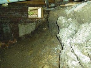 Soil erosion causing undermining of foundations and stumps, requires a retaining wall