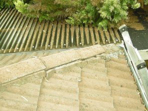 Requires fixing back in to place, as tile could wash down into spouting